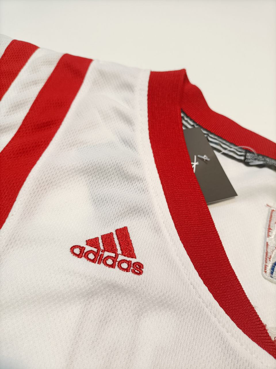 Questa canotta è in ottimo stato, priva di macchie o strappi, e mantiene tutte le caratteristiche originali che la rendono speciale. Il logo, il numero e il nome del giocatore sono cuciti con precisione, mentre una patch ricamata con il logo è situata sul fondo della maglia, conferendo un tocco di autenticità e qualità.