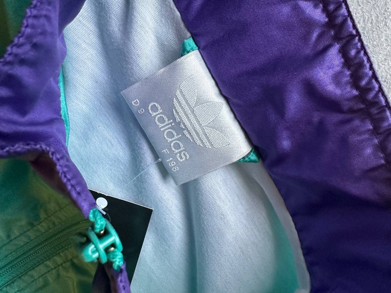 Una Adidas Track Top vintage unisex taglia L, autentico pezzo anni ’80 che incarna lo stile sportivo d’altri tempi. Questo articolo second-hand è imbottito, con tasche frontali con cerniera, logo frontale inciso e dettagli come maniche con polsini e molla in vita che garantiscono comfort e vestibilità regolare/comoda.