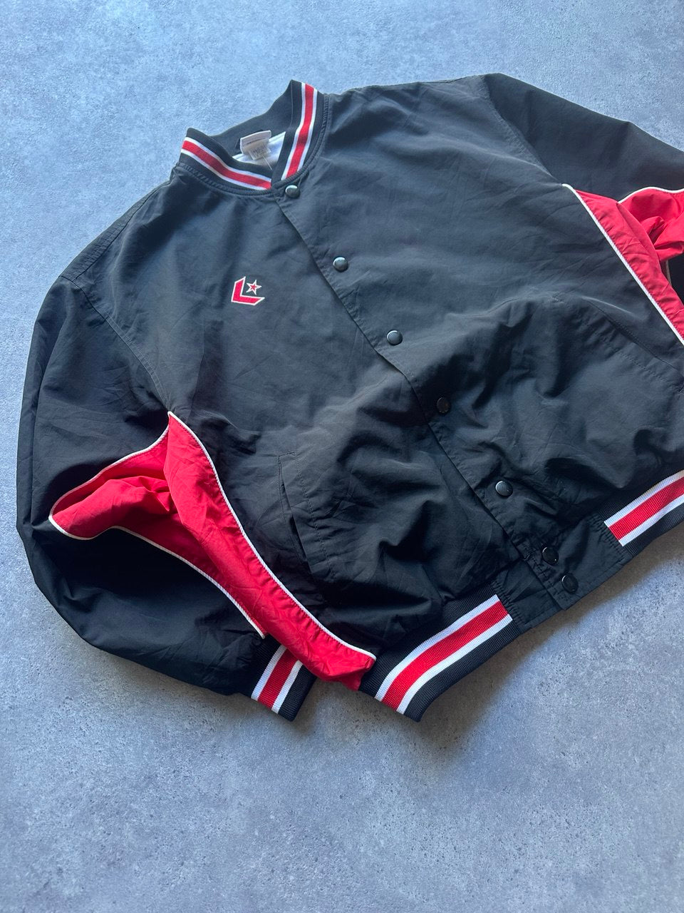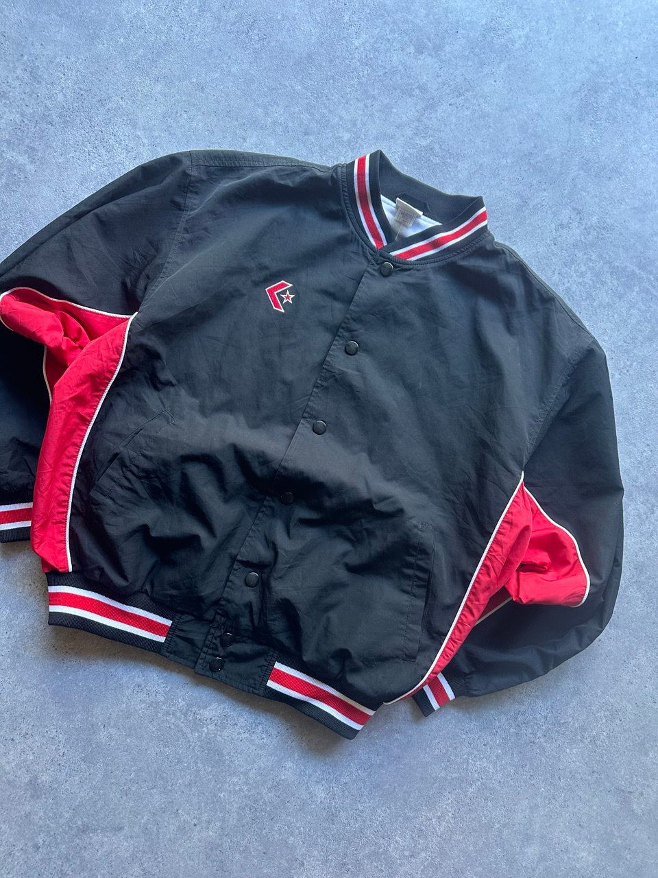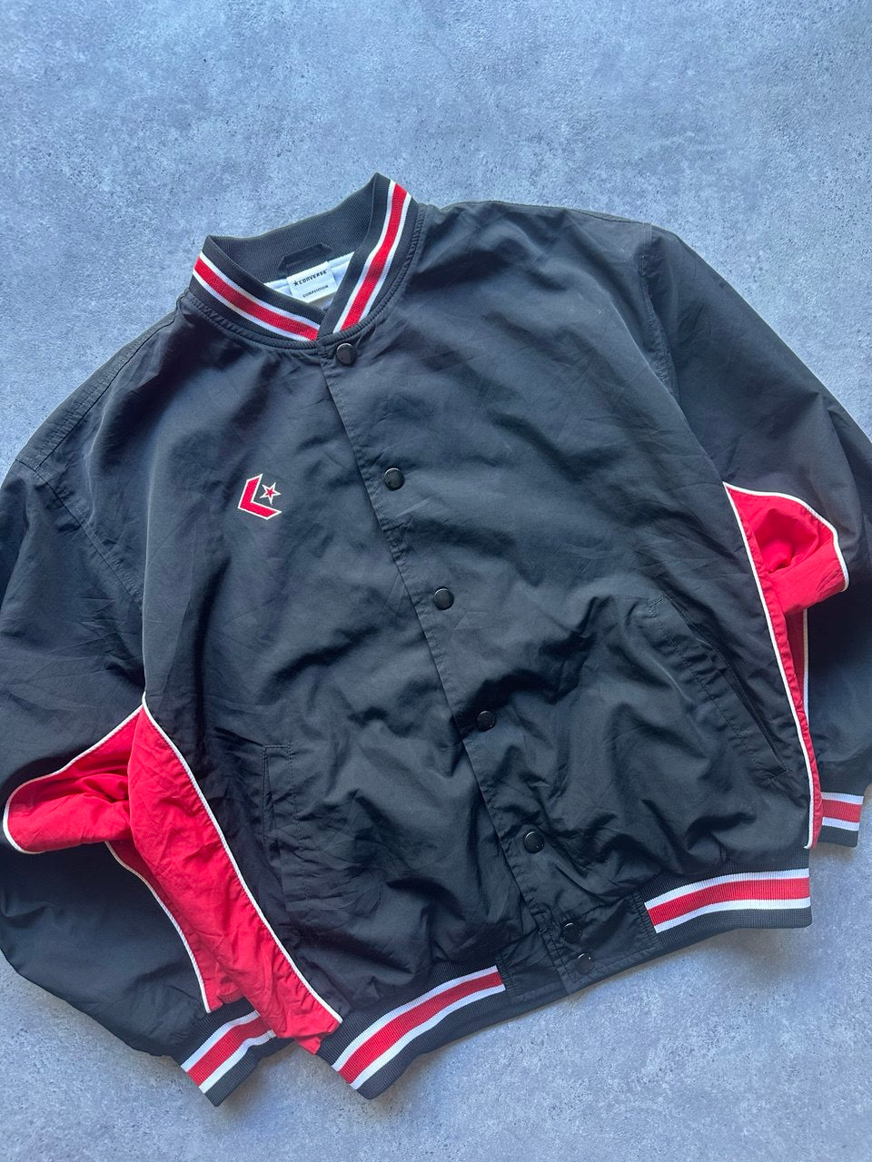 Una Converse College Jacket unisex taglia S, perfetta per chi ama lo stile vintage autentico e il fascino intramontabile dello streetwear sportivo. Questo capo second-hand rappresenta la combinazione ideale tra comfort e personalità, con il logo ricamato che valorizza il design classico. La chiusura a bottone frontale e le tasche pratiche la rendono funzionale e versatile, mentre maniche con polsini e molla in vita assicurano una vestibilità regolare e ben strutturata.