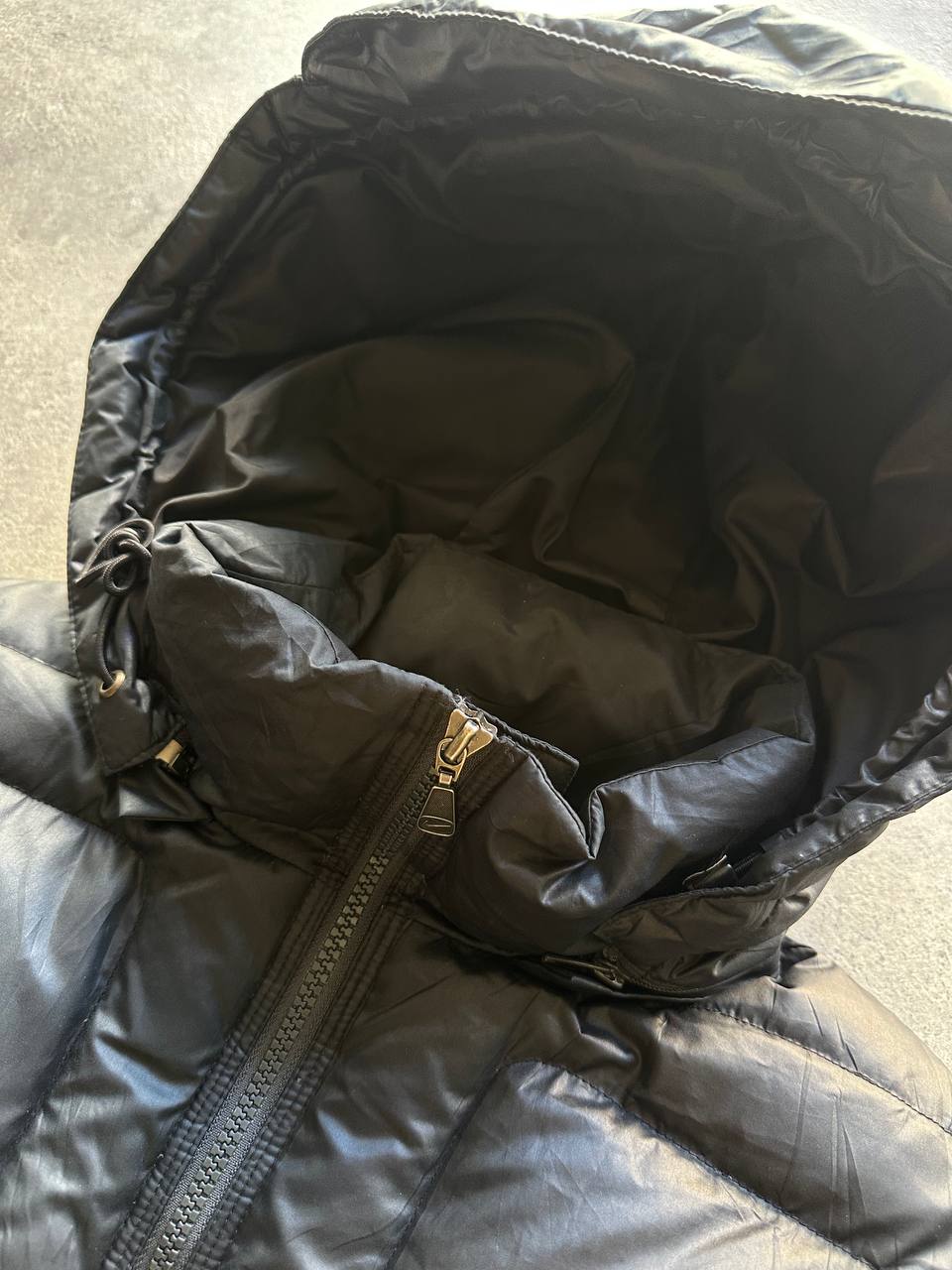 Un pezzo autentico di stile Y2K: questo giubbino bomber Nike vintage anni 2000 è l’emblema di chi ama distinguersi con un look streetwear senza tempo. Realizzato con cura e materiali resistenti, presenta il logo ricamato Nike sul petto, le maniche con polsini elasticizzati e la molla in vita che assicura una vestibilità regolare e confortevole. Il cappuccio con laccetti regolabili e il cursore con logo inciso aggiungono quel tocco iconico che solo i capi d’epoca sanno trasmettere. Perfetto per la stagione invernale, primaverile o autunnale, questo bomber unisex si abbina con tutto: dai pantaloni cargo alle sneakers retrò, per un outfit casual ma deciso.