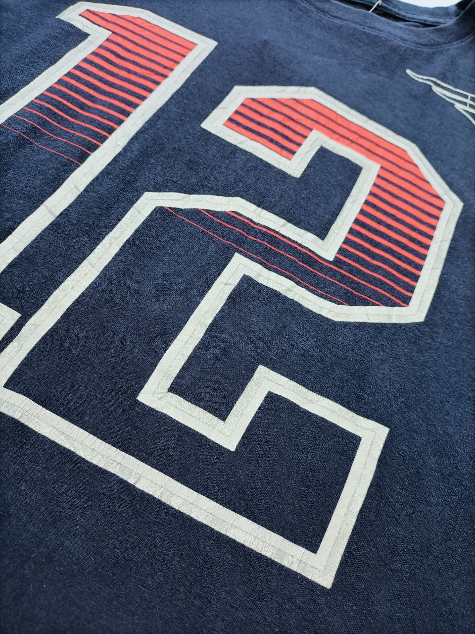 In perfette condizioni, questa t-shirt è priva di difetti o strappi e non presenta alcuna macchia. Con il logo stampato, mostra il tuo sostegno per i Patriots e per il leggendario Tom Brady.