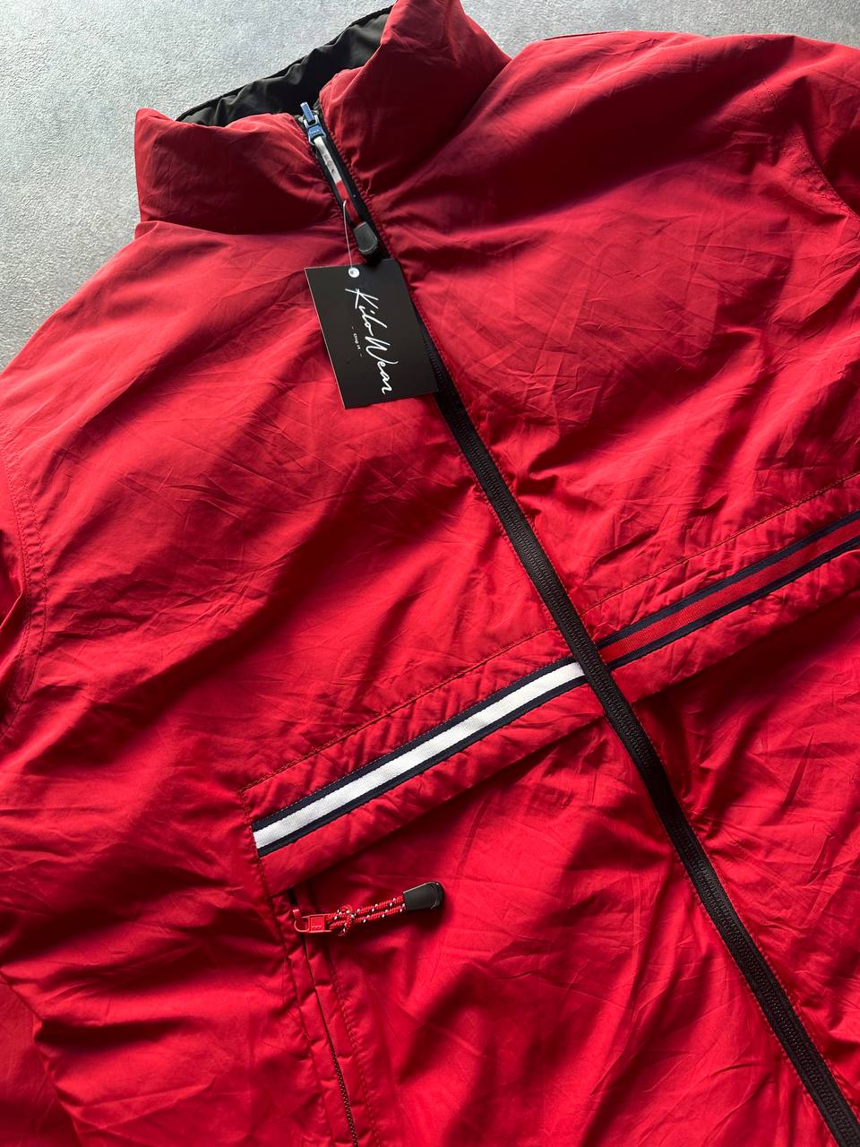 - Logo ricamato su manica lato rosso